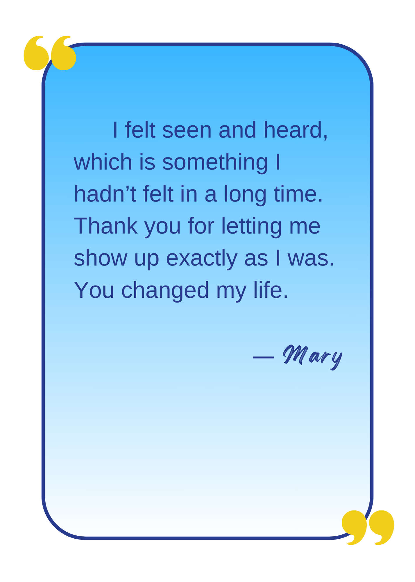 A safe and welcoming space to share your story and feel genuinely heard without judgment.